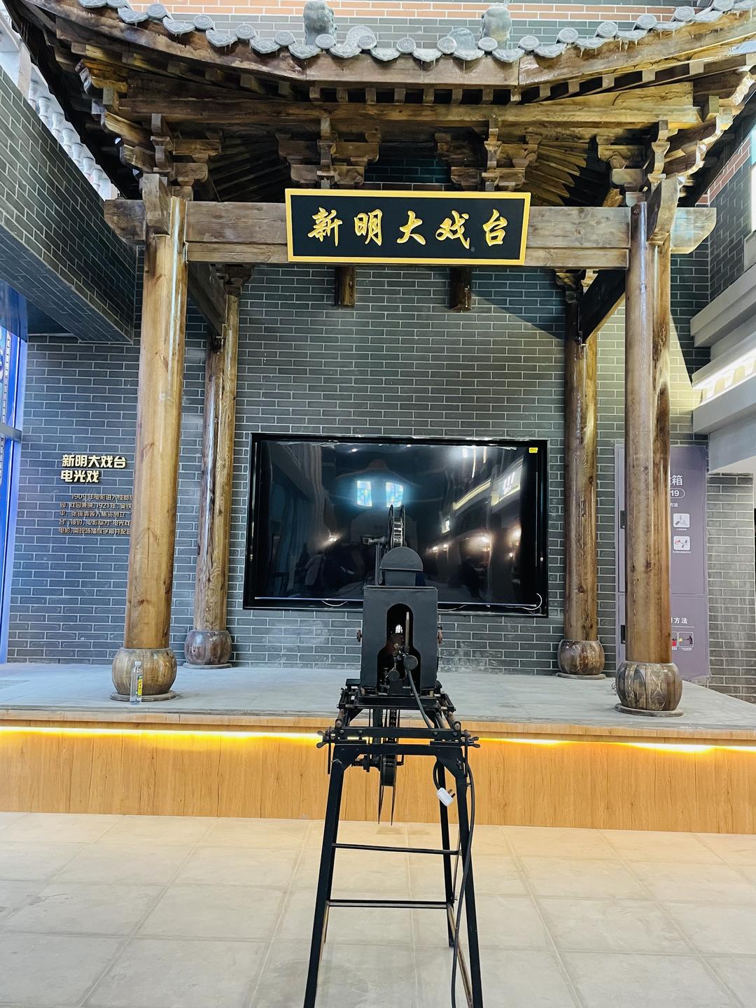 除了展出大量史料,復(fù)業(yè)后的新明電影院在影院設(shè)計(jì)上,也承襲了“老”新明電影院的元素。影院設(shè)立了“新明大戲臺(tái)”,而1924年新明電影院開(kāi)業(yè)時(shí)使用的同款放映機(jī)也格外醒目。